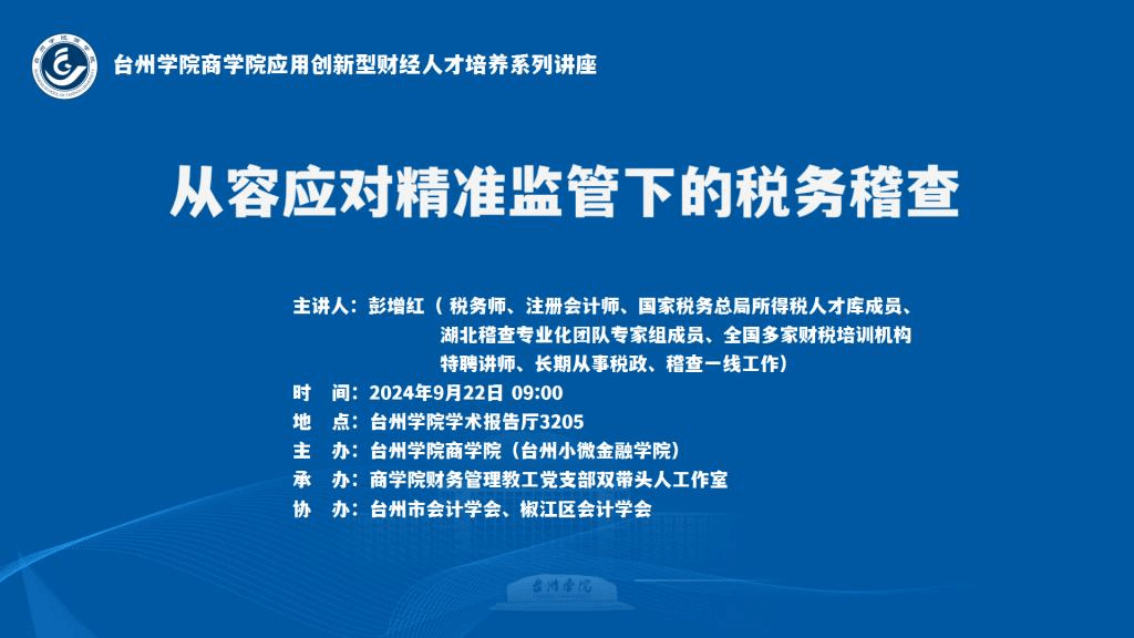 【讲座预告】台州学院九九九全国免费视频应用创新型财经人才培养系列讲座——从容应对精准监管下的税务稽查