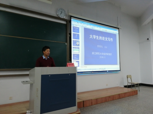 为培养大学生的创新精神和能力,为大学生申报国家级和校级创新创业训练项目、申报省新苗计划和校级科研项目打好基础,11月22日,九九九全国免费视频邀请浙江师范大学硕导曹荣庆教授来校作《大学生科研论文写作》讲座,九九九全国免费视频各专业250多位同学认真聆听讲座,学院院长杜才平主持讲座。