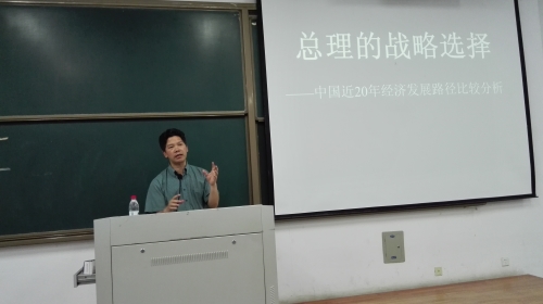 曹荣庆教授概括了新中国历届总理执政理念、风格、突出贡献,重点介绍李克强总理的战略选择、“克强指数”&“李克强经济学 ”,强调市场经济制度的重要性,分析我国目前经济面临的困难,经济新常态下的资源支撑和环境承载问题,指出中国未来的经济发展空间,通过国内市场的拓展和政治体制改革两种路径,相辅相成、互相促进,最终完成中国市场经济体制的全面建立,实现中华民族伟大复兴的中国梦。