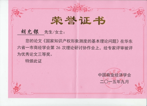 在今年9月份举办的华东六省一市商经学会第26次理论研讨协作会上,我院胡允银老师的论文《国家知识产权形象测度的基本理论问题》被中国商业经济学会评为优秀论文三等奖。