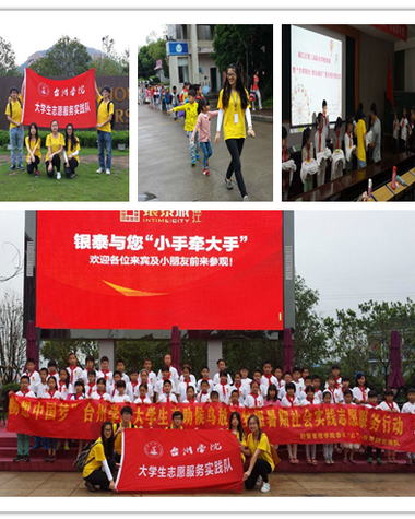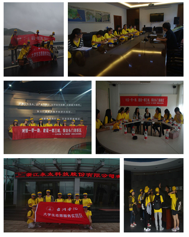 “头门港”实践调研队结合国贸专业,探访台州经济的最新发力点,调研台州在“一带一路”国家战略下如何探索对外经济的新思路。“泥泞红风行”实践队作为一支传承革命传统的“红色”团队,前往天台探访抗战老兵,纪念中国人民抗日战争暨反法西斯战争胜利70周年。“解码小微金融”实践队发挥财务管理专业优势,深入农村和乡镇,在街头巷尾普及金融知识,实现课堂知识的社会应用。“长潭水库生态补偿机制”调研队结合环保经济和“五水共治”等热点,探索如何实现经济发展与环境保护的平衡,为打造人与自然和谐发展的“一都三城”献计献策。春泥“志”青春志愿服务队携手椒江团区委和前所街道团委,开展别具特色的“感恩、奉献、传承”主题支教活动,关爱农民工子弟和留守儿童,在当地引起热烈反响,被钱江晚报、台州日报等多家媒体报道,还被推荐为省级暑期社会实践优秀团队。