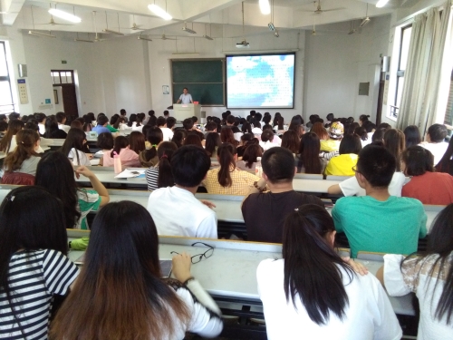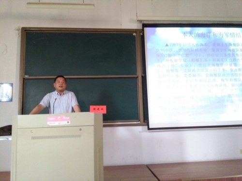 5月12日下午,台州市港航管理局局长周建业应经贸管理学院邀请在椒江校区2303教室作《中国海洋与海军战略》讲座,学院大一、大二年级近260位学生参加讲座,学院党总支书记王凌主持讲座。