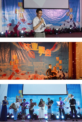 6月15日晚,学院2016届毕业晚会在椒江校区大学生活动室动情上演,打造了一抹属于毕业生的专属记忆。学院领导、辅导员、毕业班班主任及全体毕业生参加晚会。“匆匆那年”、“感恩追忆”、“踏梦远行”,晚会的三个篇章,演绎着熟悉的场景;激情四射的舞蹈、感同身受的情景剧、催人泪下的师生合唱……道不尽的四年点滴。其中诗朗诵《今天,我毕业了》,由学院7个专业7名优秀毕业生代表表演,深情的话语,动人的告白,“今天,我毕业了,我向母校汇报……”诉说的不仅仅是经管学子在台院的积累与沉淀,更是他们面对未来的骄傲与信念。院长杜才平为毕业生们送上临别寄语:希望你们永远拥有一颗善良的心,希望你们永远保持正确的方向,希望你们在新单位脚踏实地、埋头苦干。朴实真挚的祝福赢得全场掌声不断,谆谆的教诲将永远铭记。这一份节目内外流露的真情无不让人动容,这一场承载成长记忆的晚会无不牵动所有毕业生的心。最后,晚会在全体毕业生的《最后一次点名》中圆满结束。