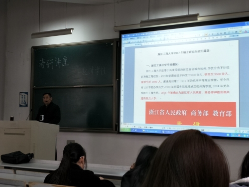 为普及考研知识,增强同学们考研的积极性,经贸学院经济学社延续传统,举办考研讲座。本次讲座于3月16日,在椒江校区2301举行,由经贸管理学院谢汪送教授主讲,吸引了近200名同学参加。