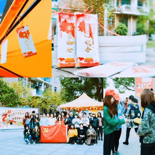 学生第一党支部的党员和入党积极分子,自发开展“学习聚焦十九大、对党说说心里话”系列活动,线上组织同学们在微信平台“台院经管红色家园”上畅谈心声,线下将十九大报告中的经典论断设计制作成精美书签,于11月28日在椒江校区设点分发给在校师生,活动共发放书签500余份。