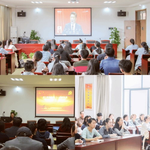 学院总支部署学习计划,营造深入学习十九大会议精神的浓重氛围。会议召开当天,学院组织师生在“党员之家”、会议室、学生寝室等场所集中观看直播;随后,党总支印发《关于认真学习宣传贯彻党的十九大精神的通知》,学院通过理论中心组学习会、教职工会议、党支部专题学习会和主题班会,制定学习计划,组织师生交流。党总支书记王凌给全院教师做题为《学习贯彻党的十九大精神会议》的专题党课学习,各党支部向每位党员发放十九大学习读本,学生辅导员、班主任进班级,下寝室,做好引导宣传工作,十九大会议精神入脑入心。