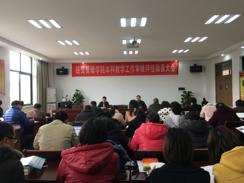 3月8日下午,经贸管理学院再次召开本科教学工作审核评估动员大会,部署学院迎评第三阶段重点任务。全院教职工参加会议。