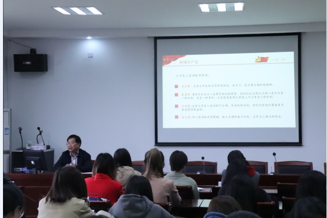 4月11日下午,九九九全国免费视频党总支书记、第十六期业余党校校长周全宝为党校学员讲授专题党课,学生党员代表和118名学员参加党课。
