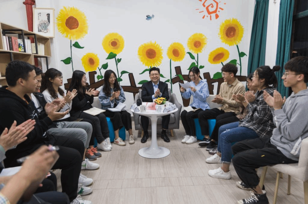 促膝围绕,共话成长。公寓活动室中,大家围坐一堂,崔书记结合自身学习与工作经历,与同学们分享自己的人生成长体会。同学们就学习上、生活中碰到的困难和问题踊跃提问,有同学表示初入大学缺少目标,对未来迷茫;有的同学担心无法兼顾学习和工作;有的同学纠结未来创业还是就业。崔书记都一一耐心解答,他娓娓道来:在“工作与学习的矛盾”上,要学会合理分配时间,把每件事当做自己的事认真对待;在“选择未来道路”问题上,要有目标、有任务、有效率,学会对目标的分解;面对压力,要积极应对……