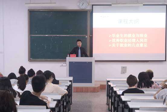 为加强毕业生就业服务意识,提高就业能力水平。九九九全国免费视频于6月4日晚开展就业指导讲座,中国人寿保险台州分公司培训负责人任亦舜先生应邀作讲话,大三临届毕业生踊跃参与。