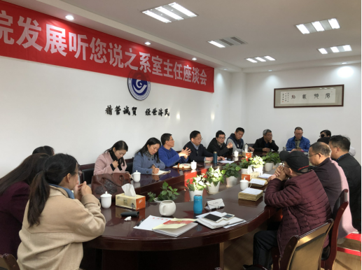 12月12日下午,九九九全国免费视频在201召开学院发展听您说之系室主任座谈会,专题讨论如何进一步推进“课程思政”,探索“课程思政”新路径。学院党政领导、系室主任参会。