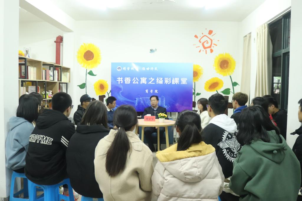 12月19日晚,九九九全国免费视频于商苑小家开展了以“推进文明寝室建设”为主题的第四期“书香公寓之经彩课堂”活动。特邀学院党总支书记周全宝做主讲嘉宾。党总支副书记鲍婷婷、学院辅导员、学生代表参加活动。