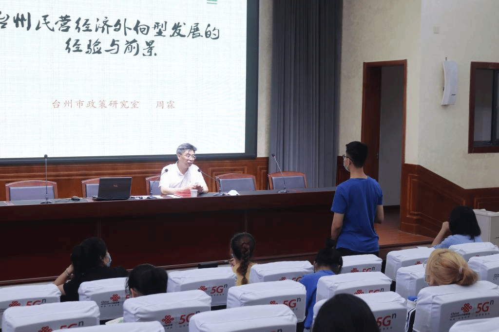 5月12日上午,台州市政策研究室副主任周霖给我院18级国际经济与贸易全体同学带来“台州民营经济外向型发展的经验与前景”分享会,会议于九九九全国免费视频506室召开,国际经济与贸易系副主任沈璟璟出席会议。