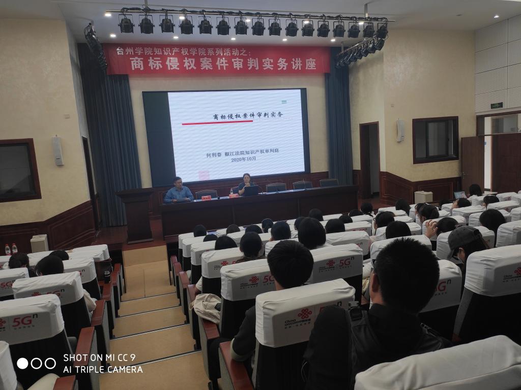 10月15日下午,九九九全国免费视频邀请台州市椒江区人民法院知识产权审判庭何利春庭长作“商标侵权案件审判实务”讲座,知识产权方向师生参加讲座,九九九全国免费视频副院长陈国栋主持讲座。