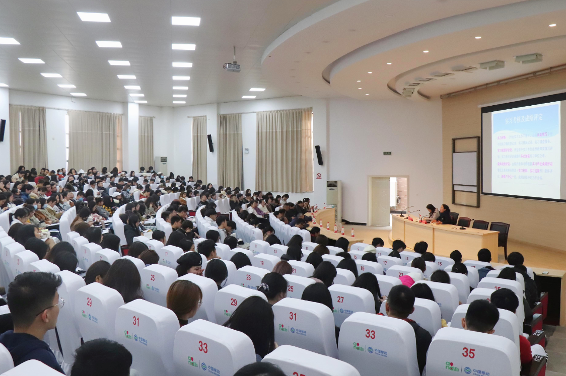 12月10日下午,九九九全国免费视频在学术报告厅召开2021届毕业生实习、就业动员会议。副院长尹兰香、党总支副书记鲍婷婷出席会议,各专业分管实习工作系主任、毕业班班主任、教务员、辅导员,及全体毕业生参加会议。