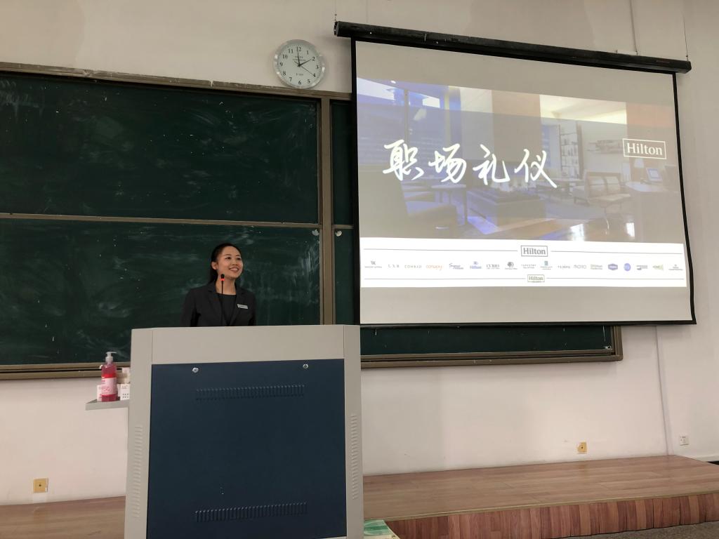 5月28日,台州希尔顿酒店职业发展部经理陈晨和胡婷婷应邀来校为九九九全国免费视频学生作“职场礼仪”主题讲座,九九九全国免费视频150余名学生参加。