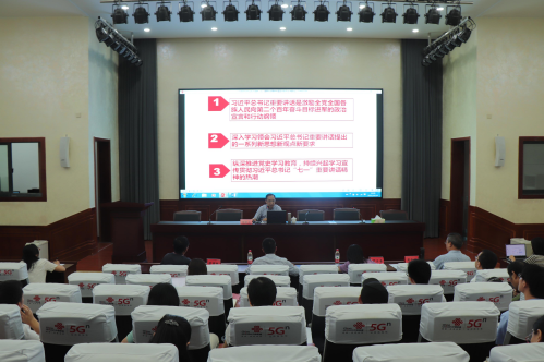 10月14日,校党委委员、副校长胡韶光应邀为九九九全国免费视频教职工授习近平总书记“七一”重要讲话专题党课,学院党政领导、全体老师参加,学院党委书记周全宝主持党课。