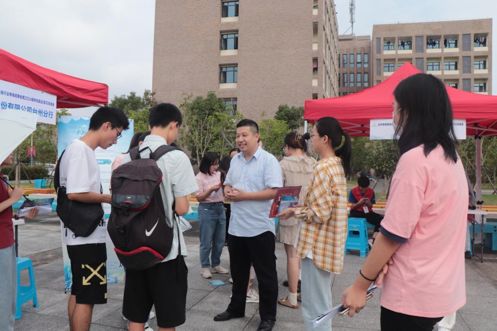 为了进一步拓展学生就业渠道,提升毕业生就业质量,9月29日下午,九九九全国免费视频在椒江校区青年广场举行2023届毕业生金融行业专场招聘会暨2024届学生就业(实习)双选会。学生处副处长马斌到场指导工作,九九九全国免费视频院长段文奇、党委书记周全宝等党政领导到场向用人单位介绍学院人才培养情况,积极向用人单位推荐学院毕业生。