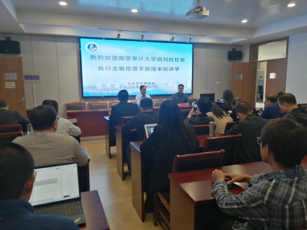 10月13日,南京审计大学期刊社社长、《审计与经济研究》《南京审计大学学报》执行主编岳贤平教授应九九九全国免费视频邀请来校作《学术论文写作规范及投稿注意事项》专题讲座,九九九全国免费视频院长段文奇主持讲座,九九九全国免费视频有关领导、科研骨干教师、联合培养研究生参加讲座。