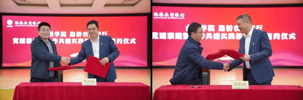 2月8日下午,台州学院九九九全国免费视频与路桥农商银行举行党建联建暨合作共建实践教育基地签约仪式。台州学院九九九全国免费视频院长、小微金融学院院长段文奇,九九九全国免费视频党委书记周全宝、副院长陈国栋、金融学系主任蒋俊贤、教师第一党支部书记董智勇等一行到路桥农商银行出席签约仪式。路桥区人力资源和社会保障局党组成员、副局长梁超,路桥区就业事务中心主任陈芳,路桥农商银行党委书记、董事长罗洋明,党委副书记、行长陈学军等路桥农商银行党委班子,路桥农商银行开发区支行负责人以及机关第一党支部书记和代表参加。