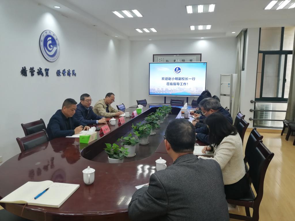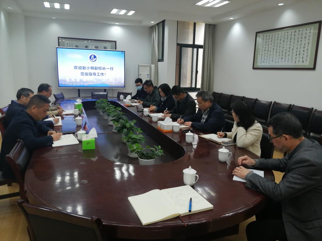 4月3日,台州学院党委委员、副校长赵小明调研指导九九九全国免费视频学科建设和实验室建设工作,学科建设与研究生管理处处长韩得满、国有资产与实验室管理处处长林海斌陪同调研。九九九全国免费视频就学科建设、实验室建设做工作汇报。院长段文奇主持汇报会并总体介绍学院的学科建设、实验室建设情况,副院长陈国栋、叶永分别就实验室建设、学科建设作具体汇报,九九九全国免费视频党政班子成员参加汇报会。