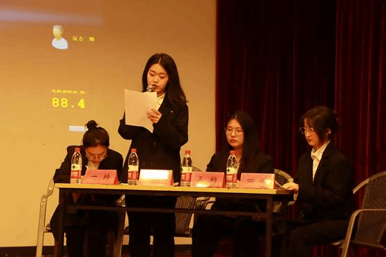 经过初赛和复赛的选拔,由21国贸唐淑媛、22财管程静、22国贸姚苏佳等等8位选手脱颖而出,并分别组成正反双方进入决赛。双方围绕“短视频盛行提升/降低了当代人的认知能力”的辩题开展激烈讨论,辩手们激昂陈词、唇枪舌剑,以犀利的言语狠攻对方漏洞,以坚实有效的论据论证自方观点,引经据典、字字珠玑,使现场气氛迅速升温。最终正方队伍凭借缜密的思辨逻辑和机智的应变能力夺得本届辩论赛的冠军,正方二辩戚愉羚同学与反方四辩钟诗甜同学摘得“最佳辩手”的称号。赛后,各位评委对辩手们的表现进行了点评,肯定双方辩友的精彩表现,同时指出存在的问题与不足。