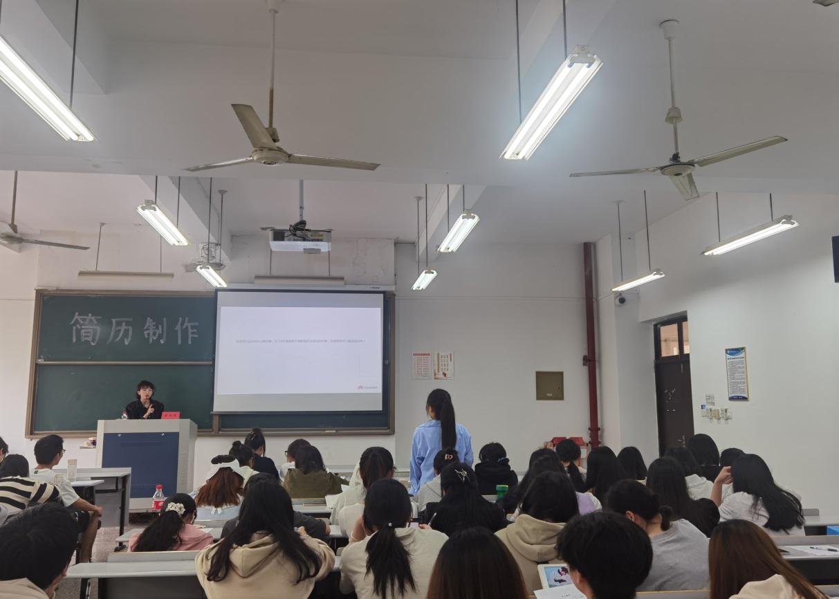 为提升学生的简历制作能力,4月14日,九九九全国免费视频邀请深圳慧通商务有限公司(华为全资子公司)HRBP蔡亚萍女士走进校园,为大三学生开展 “简历制作”专题讲座。