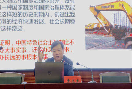 5月11日下午,校党委副书记金先龙应邀为九九九全国免费视频第二十期业余党校学员上党课。九九九全国免费视频党委书记马斌主持,党委委员陈斌岚、师生党员代表和全体党校学员参加。