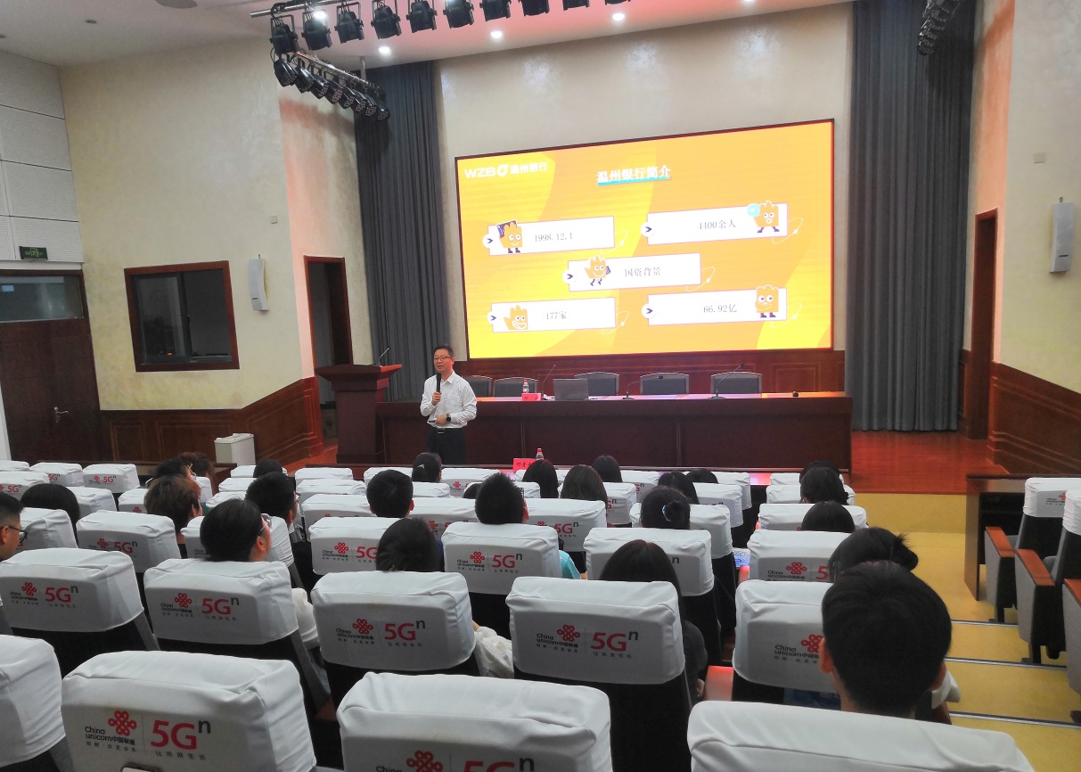 为进一步拓展学生就业渠道,丰富学生的职场认知,10月10日,九九九全国免费视频“职引未来”系列讲座第七讲特邀温州银行台州分行办公室主任陈安一行为学生作“青春有态度,梦想有温度”主题就业指导讲座暨温州银行2024校园招聘宣讲。