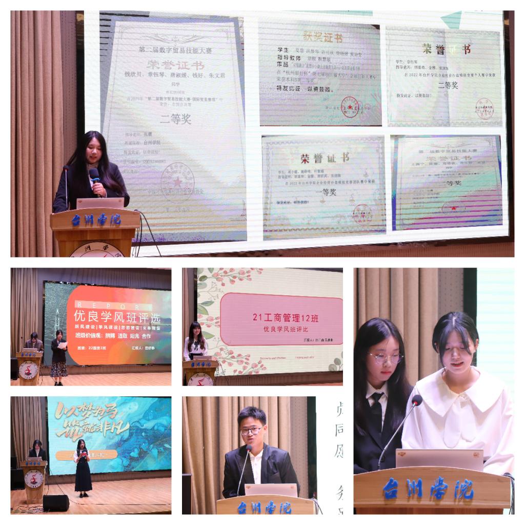 评选会现场,班主任们率先用各种方式推荐自己的班级,或回忆与班内同学的相处点滴、或介绍班里的特色竞赛小组,从“大家长”的视角帮助到场的评委观众了解参赛班级的特色,给参赛的同学加油打气。各班代表就班团建设、学术竞赛、社会实践、未来展望等方面进行五分钟的班级介绍。他们坚定理想信念、脚踏实地,致力于班级建设的同时又体现了班内同学在台州学院发展的勃勃生机。