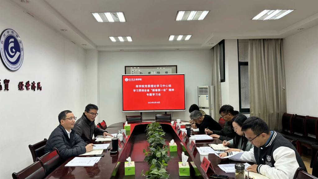 会上,与会人员集中学习习近平总书记关于人才、人力资源、干部队伍建设的重要论述精神和全省“新春第一会”精神,传达学习了学校党委书记朱坚在校党委理论学习中心组专题学习会上的讲话精神。院长段文奇作中心发言,他从“领导干部能力提升、专任教师成长赋能、管理队伍协同高效”这三支队伍的建设切入,深入分析学院目前的事业发展面临的形势任务,强调要锚定目标、勇于担当、和衷共济、追求卓越,撸起袖子加油干,突破攻坚解难题,奋力开创学院高质量发展新局面。其他与会人员围绕学习内容进行交流发言。