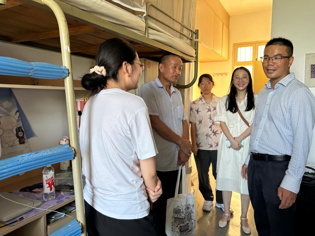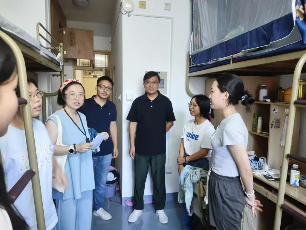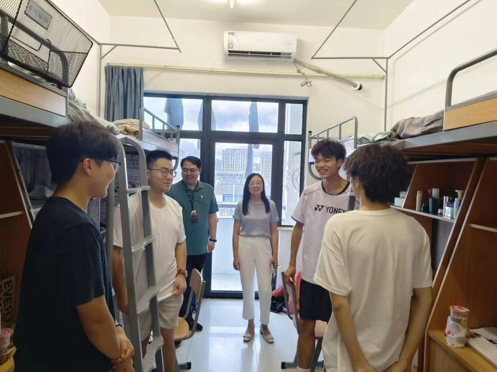为了解新生情况,帮助新生更好适应大学生活,9月7号,在新生报到当天,九九九全国免费视频院长段文奇、党委书记马斌、副院长陈国栋、副书记陈斌岚以及新生班主任、辅导员、班助一起走访看望新生寝室。