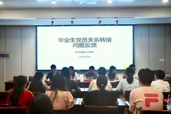 随后,星火先锋队主席徐赟详细解读了毕业生党员关系转接的具体流程、所需材料以及注意事项,并就大家关心的问题进行了现场解答。主席许欣怡介绍了开学阶段新生党章学习教育、新生党员组织关系转入以及支部书记上党课等事项的安排,主席汤杭丽围绕本学期即将开展的党员活动做了详细介绍。