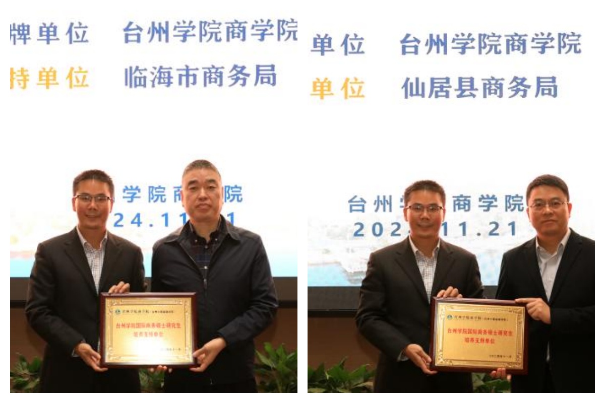 董雪旺副院长与浙江凯华模具有限公司、浙江百达精工、浙江天宇药业、浙江伟星新型建材、杰克控股集团、浙江银轮机械、浙江中非经贸港、浙江海投云贸国际供应链等公司签约国际商务硕士研究生实践基地。