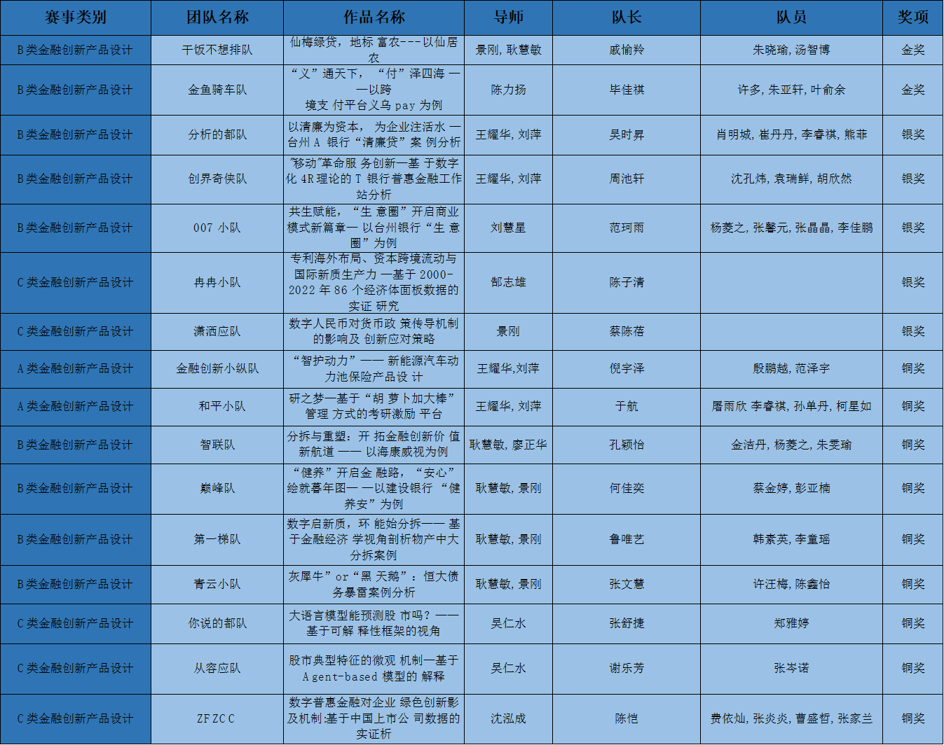 近日,第九届浙江省大学生金融创新大赛在浙江省金融职业学院圆满落幕,本次大赛共有55所高校、722支团队报名,最终有172件作品入围省级决赛。我院再次不辱使命、不忘重负,在众多团队中脱颖而出,共斩获2金5银9铜。