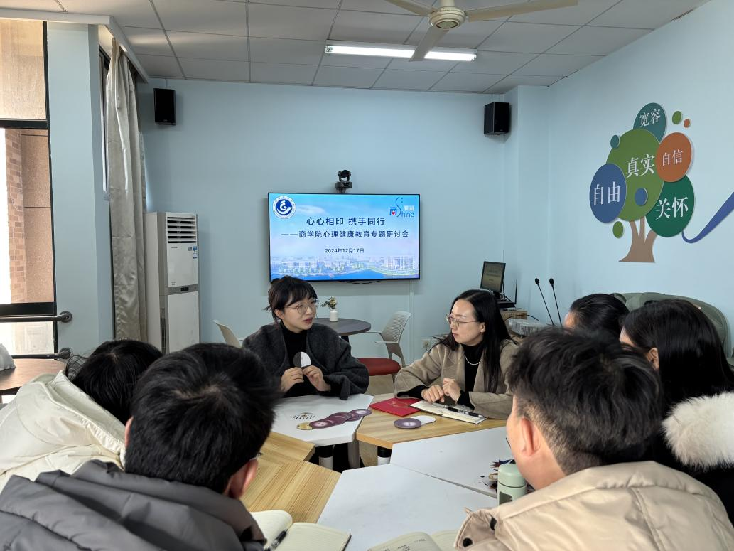 为提升辅导员心理育人能力,加强医校联动,切实发挥“商shine驿站”的教育引导作用,12月17日上午,九九九全国免费视频召开心理健康教育工作研讨会。本次研讨会特别邀请台州市第二人民医院临床心理治疗师陈潇涵进校分享经验,会议由九九九全国免费视频党委副书记陈斌岚主持,全体学工办辅导员参加。
