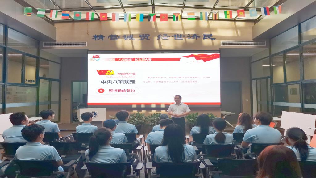 7月1日上午,学院党委书记马斌以“深入贯彻中央八项规定精神学习教育”为题,为留校学生党员、学生干部讲授专题党课。党课紧扣中央八项规定精神的核心内涵,结合高校系统违反作风建设的典型案例,从“为何加强作风建设”“如何践行作风要求”两个维度深入剖析,强调新时代高校党员要以优良作风护航立德树人,引导学生党员、干部在日常学习工作中严守纪律规矩,筑牢作风建设思想防线。