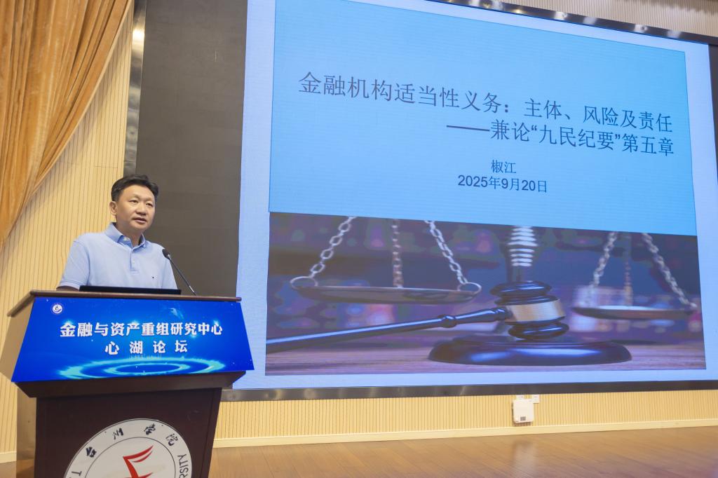 北京植德(上海)律师事务所合伙人崔白律师以“新监管形势下的上市公司重整”为题,系统梳理监管新规与典型案例;台州市中级人民法院法官、台州学院兼职教授钱为民则聚焦“金融机构适当性义务:主体、风险及责任”,结合《九民会议纪要》第五章剖析主体、风险与责任。两场报告直击实务痛点,为在场法律、金融及企业界人士提供了可操作的合规指引。