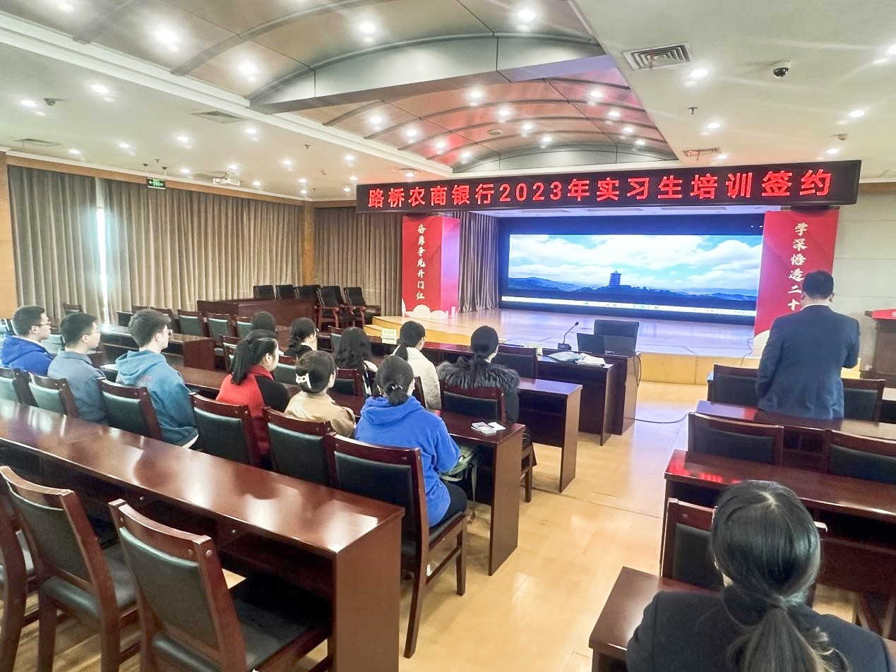3月1日下午,台州学院九九九全国免费视频与路桥农商银行举行实习生培训签约仪式,路桥农商银行人力资源部部长吴黎辉、台州学院九九九全国免费视频金融系副主任梁超等出席会议,九九九全国免费视频学生参与实习签约。
