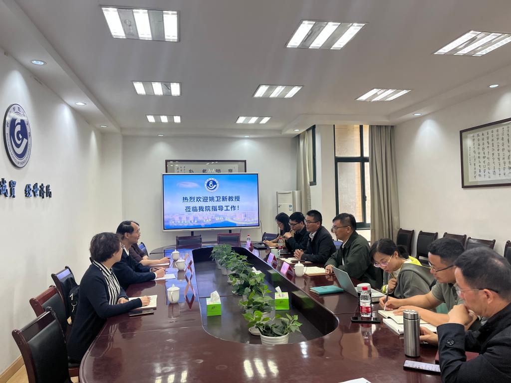 会上,段文奇代表学院对姚卫新教授的莅临指导表示热烈欢迎和衷心感谢,并简要介绍了学院发展历程、师资队伍、专业建设、教学成果和产教融合建设等情况。旅游管理专业和财务管理专业两位系主任分别作专业汇报,从培养目标、课程教学、师资队伍、学生发展、质量保障、专业特色等方面对本专业进行了详细的阐述。