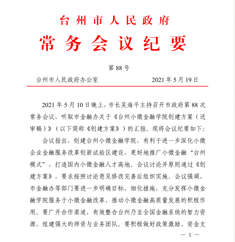 台州小微金融学院成立于2021年5月19日,学院是校地银企共建,主要从事小微金融本科人才培养、金融人才培训、上市企业高管培训、小微金融“台州模式”科学研究、社会服务的产业学院。