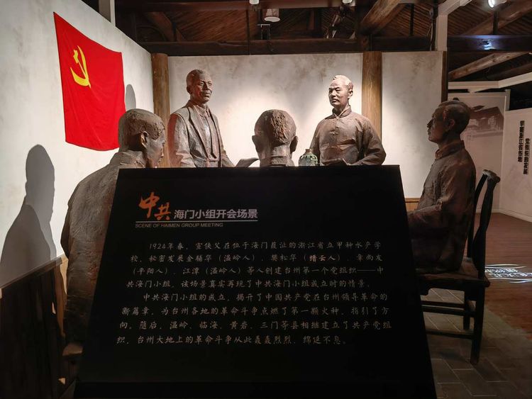 台州第一个党组织纪念馆坐落在葭沚老街境内,百年老宅前,白墙墨瓦,翠竹掩映,大门外墙挂着醒目的“台州第一个党组织纪念馆”牌匾。纪念馆主要由“雷鸣五四”、“闪光葭沚”、“风起椒江”与“潮涌台州”四大块内容组成,分章叙述了五四运动对台州的影响、台州早期党组织的成立和发展、椒江党组织在新民主主义革命时期的各类活动、党组织在台州大地掀起的波澜壮阔的革命运动,以及台州著名党史人物等,生动再现了中国共产党组织在台州的发展历程,并融合现代化电子科技元素,生动再现中国共产党组织在台州境内艰辛和辉煌的发展历程。