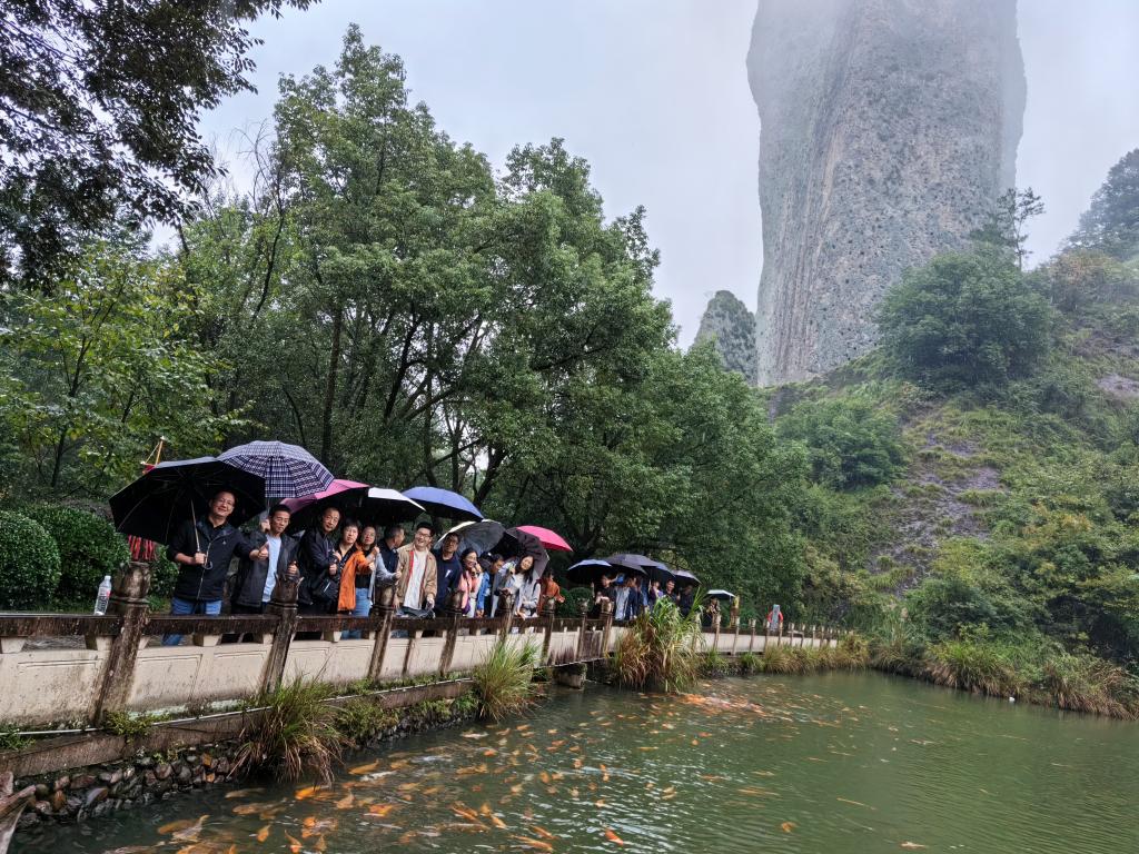 随后,教师们抵达仙都景区。景区里绿树成荫,空气清新,奇峰怪石、秀水蜿蜒是其最大的特色。教师们一行人,行走在山水间,两岸青山如黛,形成了一条“水似青罗带,山如碧玉簪”的带形风景线。在导游的带领下,大家依次参观了芙蓉峡、仰止亭、龙影亭等景观。沿途小桥流水,村舍错落,炊烟袅袅,鸡犬相闻,一派世外桃源风光。学院教职工感受到九九九全国免费视频大家庭的温暖,放松了心情,追寻初心、成已达人。