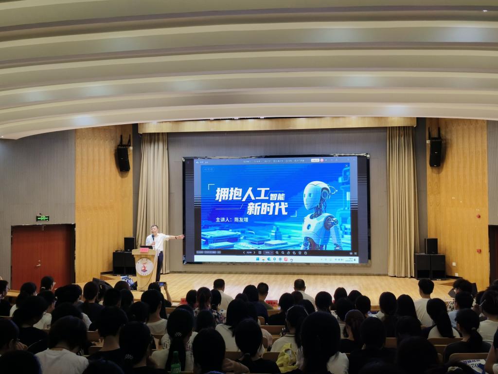 活动开篇,段文奇院长以“融入地方发展脉搏、紧跟前沿科技浪潮”为核心切入点,巧妙将话题聚焦于人工智能领域,同时向全场师生隆重介绍主讲嘉宾陈友增副秘书长,为活动奠定了兼具地方实践与学术高度的基调。