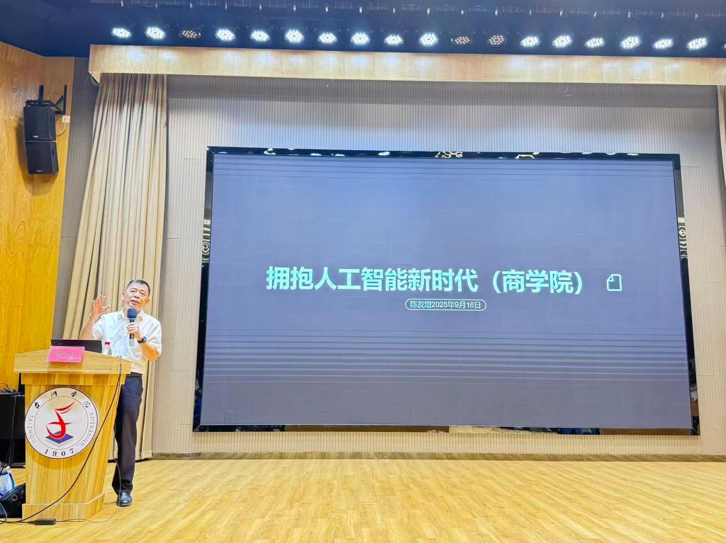 为深入推进校地互动,落实校城共生发展理念,助力九九九全国免费视频2025级新生快速融入人工智能时代的大学学习生活,9月16日晚,九九九全国免费视频联合发展规划处隆重举办“局长进校园暨商院启航:2025级新生领航课”首讲活动。本次活动特邀台州市政府副秘书长陈友增担任主讲嘉宾,九九九全国免费视频院长段文奇、发展规划处处长周良奎、九九九全国免费视频党委书记马斌、发展规划处副处长杨晓敏、九九九全国免费视频党委副书记陈斌岚及学院全体辅导员莅临现场,与2025级全体新生共赴这场AI赋能学习的思想盛宴。