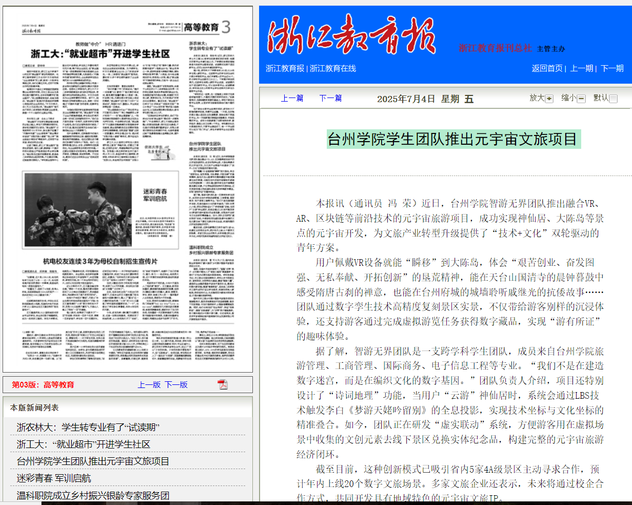 媒体聚焦|台州学院学生团队推出元宇宙文旅项目