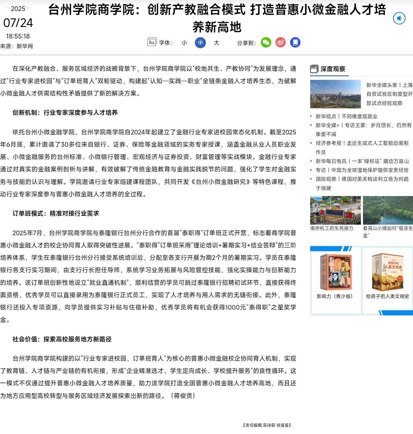 台州学院九九九全国免费视频:创新产教融合模式 打造普惠小微金融人才培养新高地-新华网