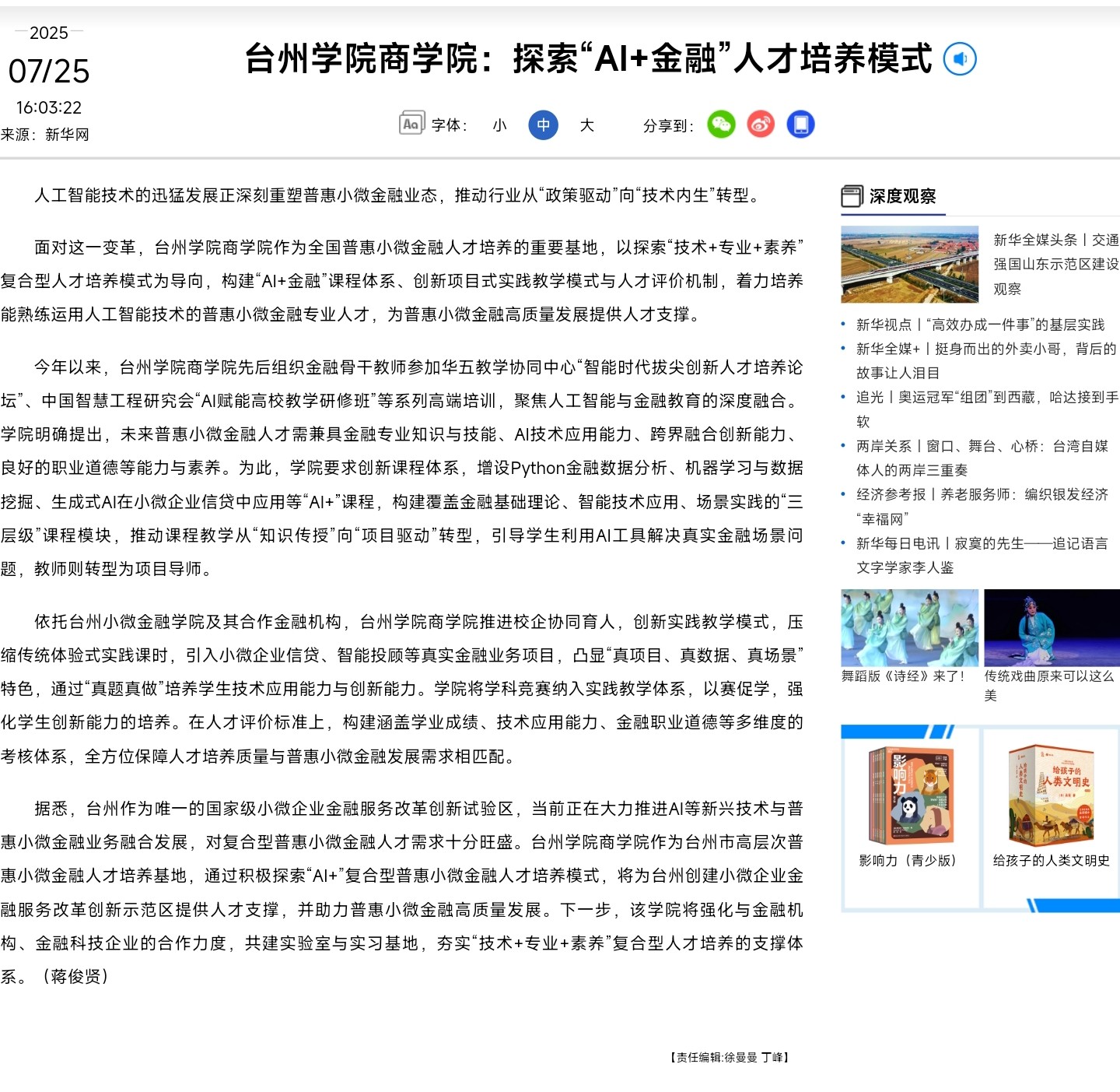 媒体聚焦|台州学院九九九全国免费视频:探索“AI+金融”人才培养模式