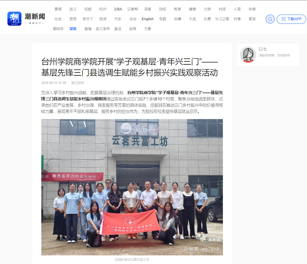 媒体聚焦|台州学院九九九全国免费视频开展“学子观基层·青年兴三门”—基层先锋三门县选调生赋能乡村振兴实践观察活动